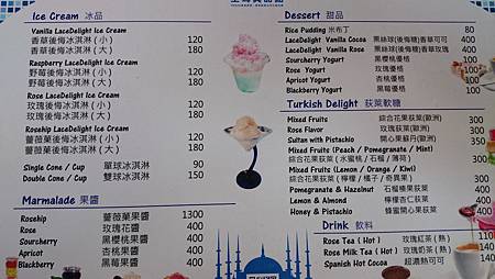吃完正餐理所當然要來吃一下甜點了,這次來訪的這間餐廳剛好前一晚在PTT上看到的,有點特別的土耳其冰淇淋專賣店。一進門店員就很熱心的介紹起來,不管是冰淇淋上淋的果醬還是特有的土耳其軟糖,店員都有詳加介紹,也有免費試吃,可惜我們後面有行程要跑,不然絕對會掏錢購買的。