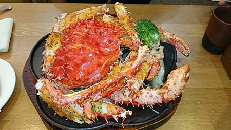 歷經上一盤的龍蝦洗禮,本來對帝王蟹不抱任何希望了,但沒想到絕地大翻盤。因為是焗烤的,所以每個蟹腳都已經剪開來方便食用,每個蟹腳殼裡面塞滿肉不說,保護殼掀掉,身體的肉更多,終於體會到在北海道吃帝王蟹是什麼感覺了。為了這道菜,回家念念不忘,無時無刻想再衝一次,真想一個人嗑掉一隻,一掃之前龍蝦的不快,為了牠,多來幾次都沒問題。