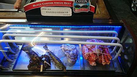 一進門就看到想吃的海產擺在那邊了,波士頓龍蝦、海大蝦、肥美生蠔、最想吃的帝王蟹,一一排好等你校閱。