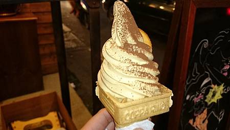 提拉米蘇霜淇淋,上面灑著可可粉,造型度有加分,而且嚐起來有一點點酒味,只有酒味不含酒精,提味而已,但吃到後來,整個焦點都著重在這個酒上面,反而忽略掉了提拉米蘇霜淇淋究竟是什麼味道。