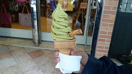 霜淇淋的盛裝容器有甜筒跟圖上所示的這種可以選,我選這種的原因是因為我吃冰比較慢,霜淇淋又融得快,四方形面積比較大,好方便承接住融化下來的精華。至於味道則不會太甜,抹茶味濃郁,也不會過苦,不意外的一下子就吃完了,最後要離開才發現原來還有抹茶聖代可以選,下次再來嚐鮮看看。