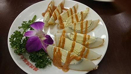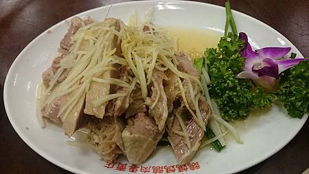蔗香鵝,每次看到蔗香這兩個字總不自覺的想點,但往往都不會吃的到甘蔗味道,這道吃起來就很像普通的燻鵝,肉質由於是冷盤的關係,所以有點紮實,還不到柴的感覺。