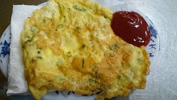 蔥蛋,本想點招牌蚵蛋,但只有一個人來吃,怕吃太多蚵仔,所以就改點這個。有蛋香跟油香,跟番茄醬是絕配,酸酸甜甜又解膩,但還是過油了點。