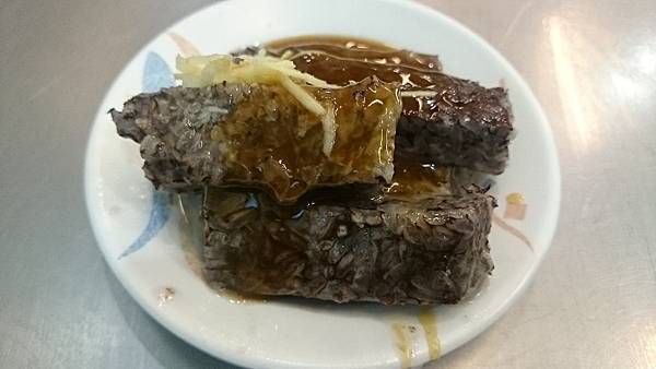 鴨米血,是個富有黏性的米血,筷子一擠壓切開,所有糯米是分成兩邊黏在一起的,還不錯吃。