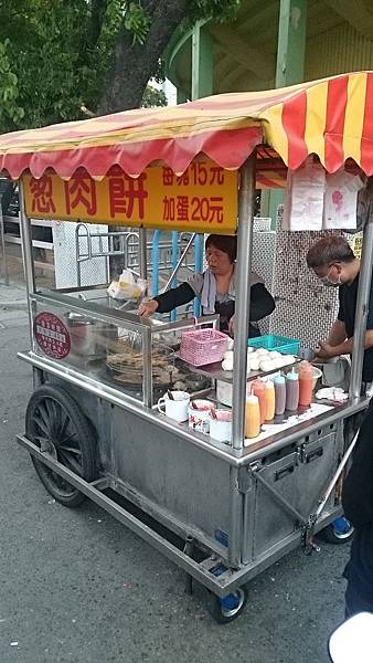 雖然才剛吃完大腸香腸,但既然都來鳳山了就再找一間小吃來享用,突然想到鳳山體育館旁有間蔥肉餅評價不錯,就立馬飛車前來。這間就只賣蔥肉餅,差別在於有沒有加蛋,而且價格有夠便宜,今天比較幸運,前面只排兩位,一下子就拿到想吃的加蛋蔥肉餅了。