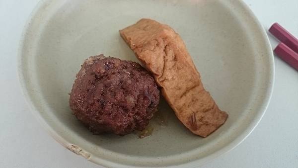 油豆腐跟獅子頭,油豆腐極其普通,也沒入味,獅子頭比較特別,很少路邊攤會販賣,肉末很細碎,但太鹹了,這調味個人不太喜愛。