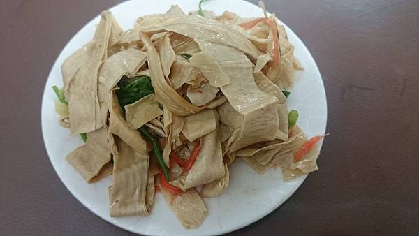 大豆皮,這盤小菜的正確名稱我不清楚,是豆製品沒錯,這是小份的,店家已經有調味過了,這間的小菜是料理過後一大盤的呈現在店門口旁邊,要點選的客人直接跟店員講份量即可。