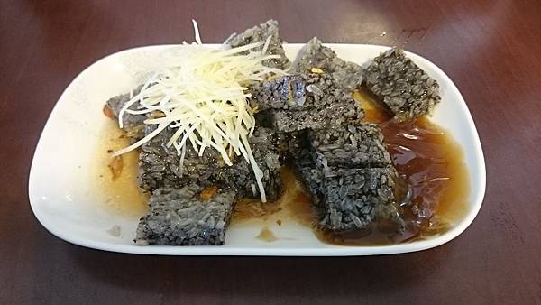 米血,這個米血口感是軟綿的,很像關東煮專賣店熬煮很久的米血,但不會太熟爛又鬆散,再沾點店家的醬油膏又更像了。