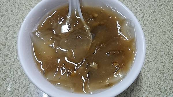 海石花綠豆湯,經過估狗大神搜尋後,原來海石花又稱海燕窩,是美容和減肥聖品,它的功能和效用就留待大家自己搜尋了,個人不做廣告。海石花我還以為像粉粿那種口感,因為看起來有點濁度,沒想到跟愛玉相差不遠,也沒有什麼味道。店家綠豆煮得很軟爛,這碗甜度就剛好,或許是因為海石花沒味道的關係吧。