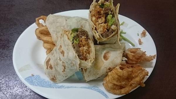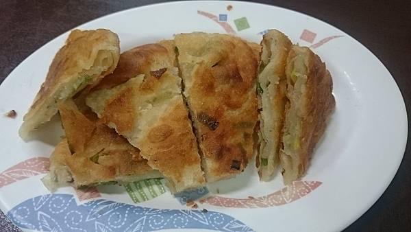 蔥油餅,餅皮用看的就知道,那種金黃香酥的程度不是蓋人的,整個就是外酥內軟,厚實有嚼感,微微飄散著香蔥味道,更讓人食指大動,只是一個人吃多了會有點膩口且較乾。