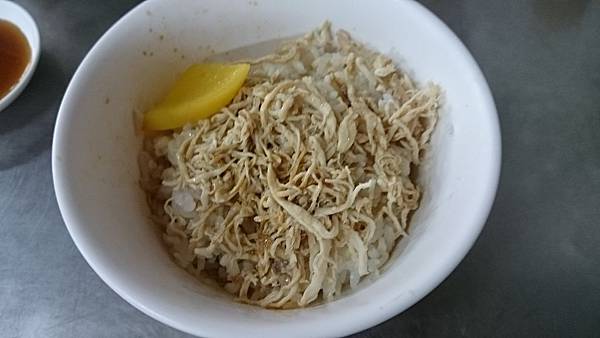 雞肉飯,說是雞肉倒不如說是雞肉絲飯,雞肉絲軟而不柴,白飯卻偏軟,淋的醬汁很多,且有點甜到讓人發膩,實在可惜。