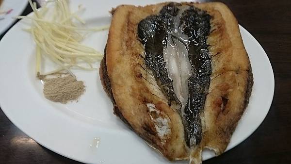 煎虱目魚肚,外表的皮肉都被煎得赤香,中間的油脂有被保留下來,魚肉幾乎沒有魚刺存在,除了中間的魚鰭部位,沾點胡椒鹽就是道新鮮好吃的虱目魚肚了。