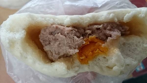 蛋黃肉包,包子皮很蓬鬆,咀嚼起來有股清甜味。裡面肉餡調味很不錯,不鹹不淡恰到好處,多個鹹蛋黃也不會搶掉肉餡風采,這我還蠻喜歡的,有種在吃厚皮小籠包的感覺。