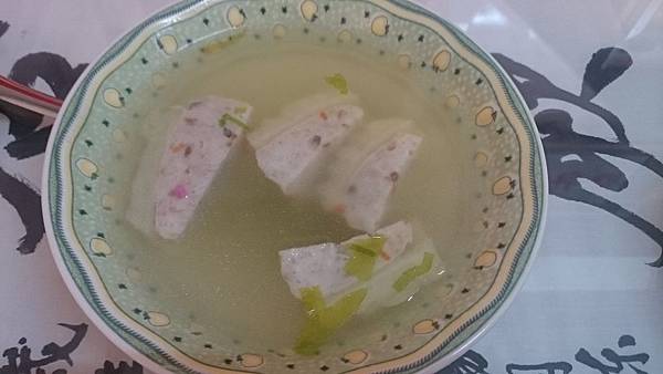 苦瓜封湯,跟我想像的苦瓜封有所不同,還以為是苦瓜包裹著豬絞肉的那種,沒想到中間部位是類似魚漿Q彈的口感,咬下去也很有味道,在稍苦的湯頭下還能凸顯出它的味道來,可見是多麼有氣味,另外苦瓜的苦韻很悠長,會殘留在口腔裡許久。