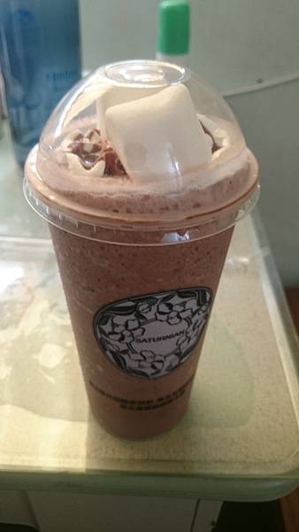 可可卡布,喝起來原來是可可冰沙,上頭的棉花糖只是個噱頭,甜度可以控制,我只點微甜就已經很合適了,雖然是冰沙,但冰塊是需要咬合的,整杯就是可可味道而已。