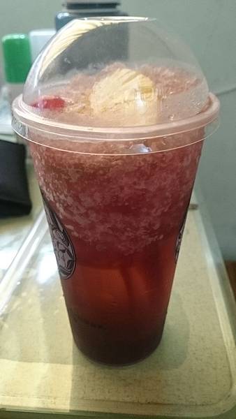 黑色幽默,想到周董的歌才點的,原以為顏色會是黑色的,沒想到是長這樣。這杯因為有放酒進去,所以有著淡薄的酒味,喝起來是酸甜滋味,底層還有類似愛玉的果凍來增加口感,還不錯喝啦,喝完讓人微醺又解膩。