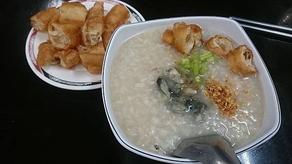 阿好鹹粥(小),油條是特地點來放進粥裡的,因為個人很喜歡油條濕軟的口感。這裡頭的料有虱目魚碎肉、蚵仔和油條,雖然不多樣,但就是一種簡單樸素的感覺。蚵仔小顆了點,卻勝在新鮮,虱目魚肉肉質比較粗糙,整碗調味鹹淡適中,幾乎上門的客人都會來上一碗解解饞。