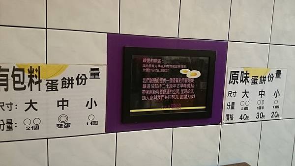 菜單字體太小,拍了也是白拍,反正店家主打產品就是手工麵漿蛋餅和蚵仔煎。