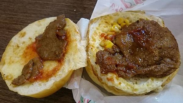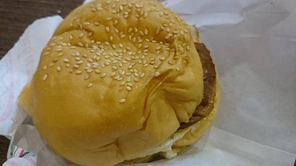 辣肉漢堡蛋,外皮麵包沒有烘烤過,口感不是很好,辣肉一點也不會辣,就偏軟的豬肉片,然後玉米取代了生菜,是個能填飽肚子又普通的漢堡而已。