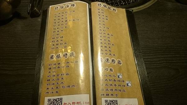 菜單雖然看不太清楚,但我大致說一下店家提供的食材好了,除了基本的牛、豬、雞、羊、海鮮、甜品和火鍋配料之外,還有手卷和炸物可以點選。