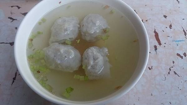 魚丸湯,湯頭清淡爽口,加點胡椒粉更為合適。魚丸呈現不規則形狀,個人不負責任推測應該是手工魚丸,口感鮮美軟彈,只能說開在漁港邊還是有其優勢存在。