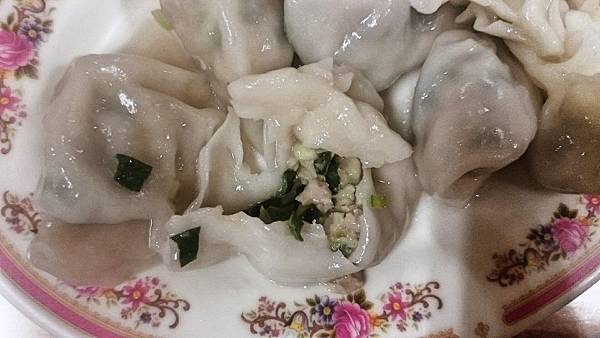 水餃,是韭菜水餃,肉餡只有水餃皮空間的一半而已,調味較淡,沾點醬油能增加清甜度,越吃越順口是一大優點。只是我最近吃到的水餃都需要靠沾醬來輔助,還真是奇怪。