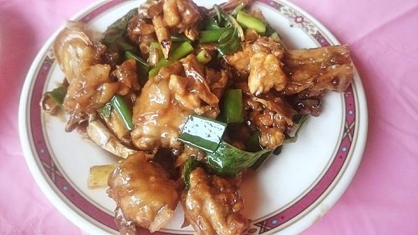 三杯刺鮭,雖然來恆春吃過好幾次刺鮭了,但每次店家有這道菜色幾乎都會點來吃。主要刺鮭肉質細緻,有皮的地方Q勁十足,唯一最大缺點骨頭太多,價格甚高。另外這道三杯炒法是濕炒,汁液沒有收乾所以香氣較弱,還好醬汁都有充分扒附在魚肉身上,爆香蒜頭的綿密感也有,整體來講算是道優缺點都有的菜色。