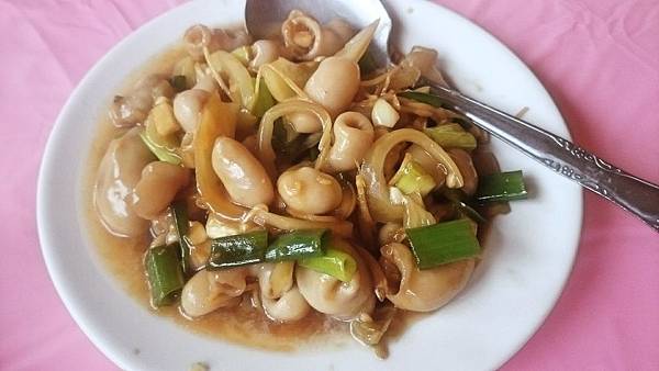 雨來菇炒蛋,這道菜可說是來恆春吃海產必點菜色,因為我還沒在其他地方吃到雨來菇阿,雨來菇的名稱可以自行估狗,實在懶得長篇大論了。口感微脆,主角則是炒蛋的醬油香氣和焦香味,連帶影響雨來菇的風味走向,所以炒蛋炒的好,這道菜就算成功,拿來下飯是絕配。