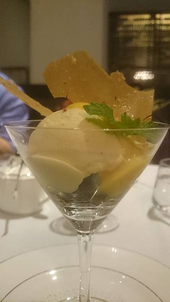 最後這白酒是款甜白酒(2013 Barton&Guesiter Passeport Sauternus),單純餐後享受用的,但聞起來的味道並不是這麼好,可是一喝甜度非常高又順口,深受兩位食伴的喜愛。