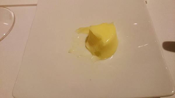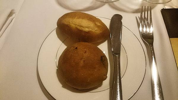 小型法國麵包和小型酒釀桂圓麵包,法國麵包外皮的酥脆程度有呈現出來,麵包裡頭的蓬鬆感也有,重點是塗抹的無鹽奶油,綿密到一蹋糊塗,是我吃過最好吃的奶油了,而且吃完整個餐點直到奶油被收走,形狀就如同圖片所示,沒有融化跡象,可見奶油的濃郁程度是多麼的誇張。至於另一款酒釀桂圓麵包其實是我自己取的名字,因為吃起來就像是吳寶春師傅的成名作一樣,但還是沒有奶油帶給我的印象深刻。