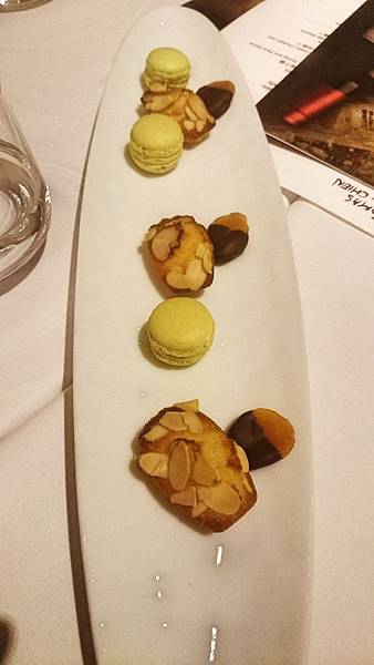 這三款甜點除了開心果馬卡龍讓人印象深刻之外,其餘兩款就還好而已。杏仁片瑪德蓮就糖霜和杏仁片味道,巧克力杏桃蜜餞則完全是壓過蜜餞的酸味,而開心果馬卡龍小歸小但五臟俱全,黏牙度適中,中間有層潤滑奶油加了不少分,且開心果味道蠻濃郁的,讓主揪一直肖想著隔壁桌沒吃完的馬卡龍,真的有趣。
