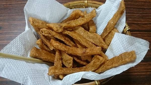 酥炸黑輪片,外表有酥勁,口感略Q,當個飯前開胃點心還不錯。