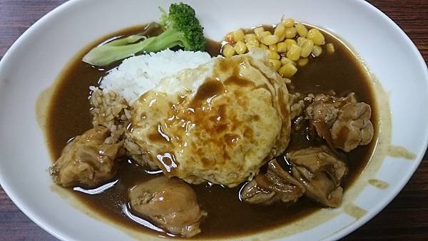 咖哩雞肉飯,雞肉用的是雞腿肉,軟嫩中帶點紮實度,而咖哩則是由香料味來主導,但卻帶點日式咖哩的甜度,很像兩者的融合,說不上來的喜歡或討厭,這個就真的只能憑個人喜好了,其他配菜就不多說了,雞肉和咖哩才是本道餐點的主角。