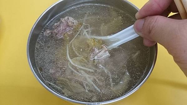 鹹菜鴨湯,許久沒喝這道湯了,且我發現每次點湯都會忽略它,所以點來補強經驗看看。鹹菜嚐起來略鹹,而鹹菜味道沒有進入湯頭,只有熬煮鴨肉和骨頭浮出的油脂,所以喝起來略油了點,好在有薑絲可以解膩一下。鴨肉肉質頗為硬實,骨頭又多,我還是比較喜歡會骨肉分離的當歸鴨系列。