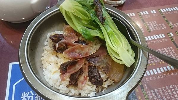 廣式臘味蒸飯,這邊要注意是蒸飯不是煲飯,所以不會有鍋巴的出現,臘肉頗乾且有點鹹,鍋底的醬汁太多導致飯變得很濕,跟我想像的不一樣,有些失望。