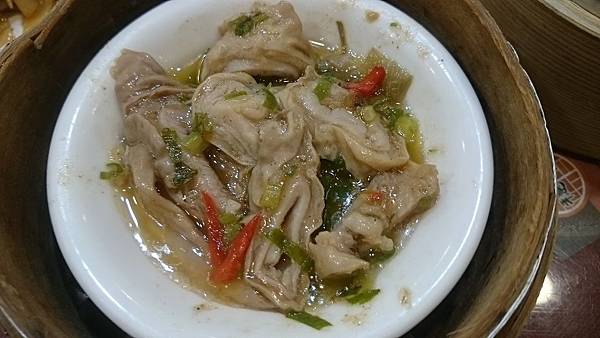 酸菜蒸大腸,大腸被蒸到幾乎軟爛了,幾近不用咀嚼就能吞下,但完全不酸,酸菜猶如擺設一樣,讓我百思不得其解。