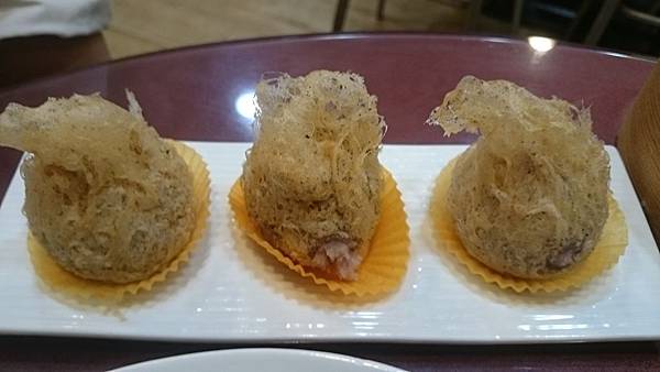 帶子蜂巢芋頭酥,芋頭很綿又多,可是裡面竟包了蔥段,味道好像有點不搭,雖然帶子口感不錯,但就是給我不對味的印象。