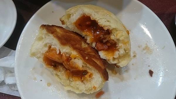 酥皮叉燒包,菜如其名,包子皮就像波蘿麵包的外皮那種口感,微酥略甜,而叉燒給的不多,但醬汁鹹甜好滋味,跟包子皮很合搭。