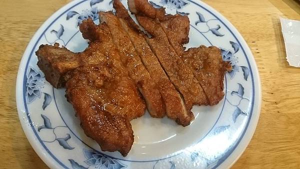 炸排骨,排骨裹的是薄粉,微酥略厚,一入口就能清楚感受到油炸過後的濃郁香氣,口感軟嫩,表現有在水準之上,比很多標榜專賣排骨的店家還要好吃,雖然專賣排骨店家的雞腿都比排骨好吃了~XD。