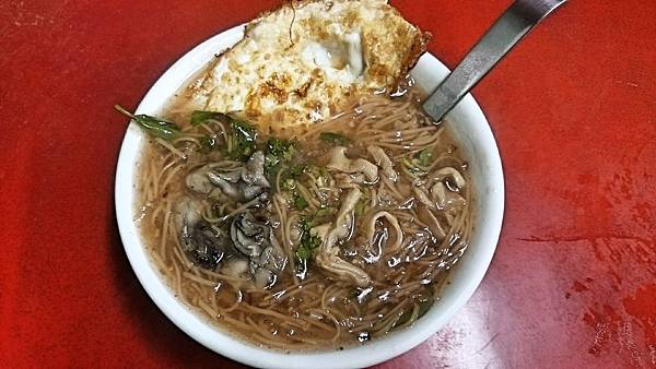 早上趁著放假時後四處溜搭,來到吉林街這邊發現這間蚵仔麵線竟然有加蛋的選項,於是就引起我的好奇心,馬上停好車入內品嘗看看。店內就販賣蚵仔麵線而已,有大小碗之分,重點加蛋才多加5元,真是佛心。另外店家有間分店,這間是本店有搬遷過,本來在十全路和吉林街交叉口附近,現在搬來熱河街和吉林街交叉口了。