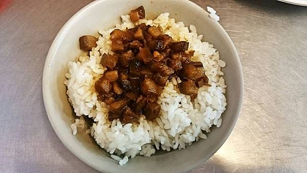 肉燥飯,肉燥以肥肉為主,微微鹹甜,可惜沒有滷出肥肉膠質,但醬汁淋很多且調味合宜,還不錯吃,只是沒有配菜來加分有點可惜。