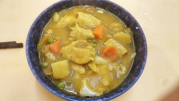 咖哩雞丁蓋飯,先說飯量蠻多的,咖哩偏向香料風,微辣不甜,但濃度還好且沒什麼香氣跑出來。而蔬菜軟爛沒獨特味道,雞丁看形狀是雞胸肉,可是口感出乎我預料外的軟嫩,這碗拿來填飽肚子很好用。