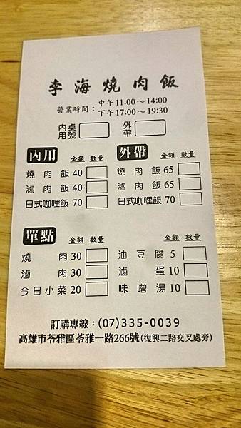 店內有紙本菜單可以填寫,除了燒肉店會賣的產品之外,還有咖哩飯可以選。
