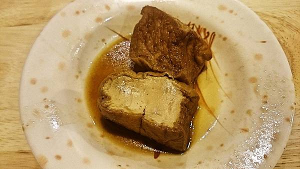 油豆腐,外皮有炸過的痕跡,一咬就能明顯清楚的感受到,內裡豆腐口感紮實且入味,算不錯吃,我沒等飯上來就吃光了。