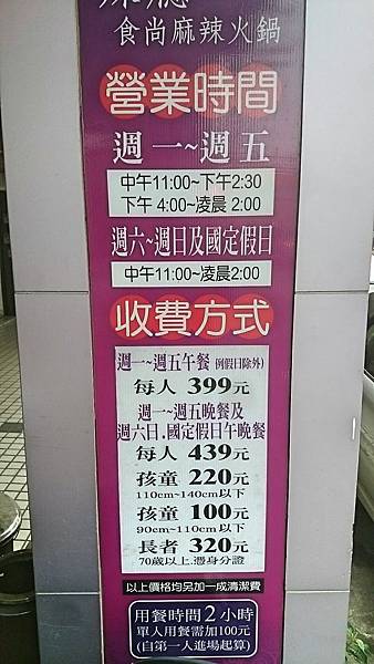 店門口前有張貼營業時間和價格,且單人用餐還多需添加100元,雖然上面寫著限2小時,但我們今天就吃快3個鐘頭了,所以這點還是讓店家來自由心證。