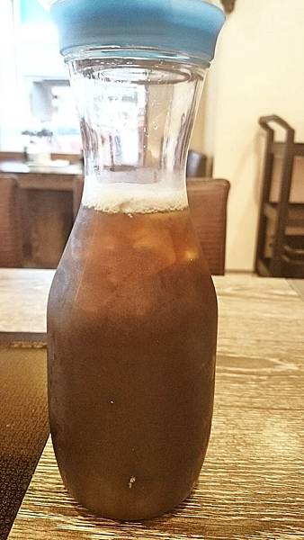 紅茶,這是店家上桌後送來的,有點甜度,但吃麻辣鍋還是配酸梅湯比較合適,麻煩的是要跑到調料區那邊拿就是了。