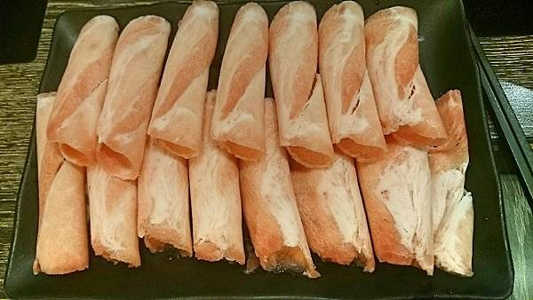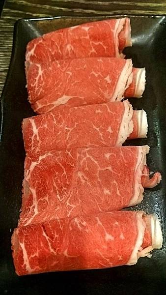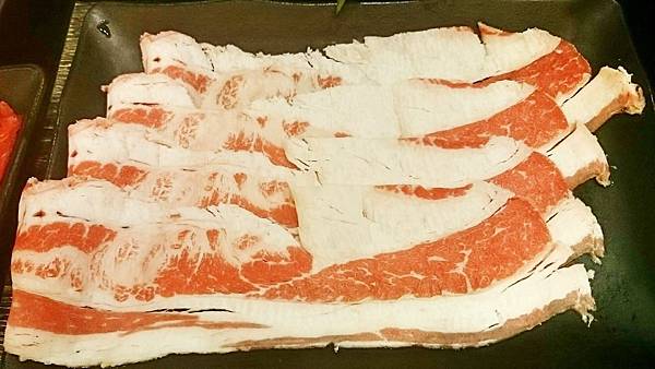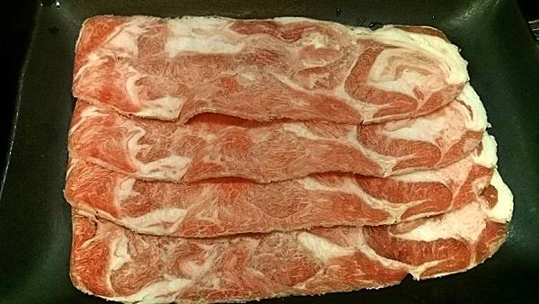 美國牛五花,油脂部分非常大片,但還好川燙幾下後,整個縮起來,油花和肉片的均勻感就會顯現出來,不再看起來很油膩,口感也是軟嫩兼俱。且在火鍋和燒烤裡,這道算是我會點選的肉片,因為易熟又好吃的特點很吸引我。