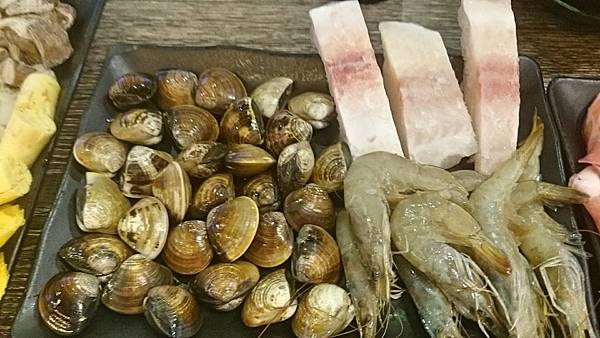 蛤蠣、白蝦和魚肉,蛤蠣店家給很多,但煮起來卻很小顆。白蝦的話,肉質新鮮緊實,有一定水準,魚肉則是太軟太水,個人不愛。