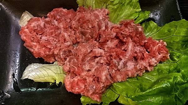 打拋牛肉,這要用濾匙來川燙,不然一下鍋會全散,因為就是肉末所組成。熟透後的口感非常軟爛,肉質質地都被破壞掉了,搭在白飯上淋點醬料,或許真的能變成一碗蓋飯也說不定。