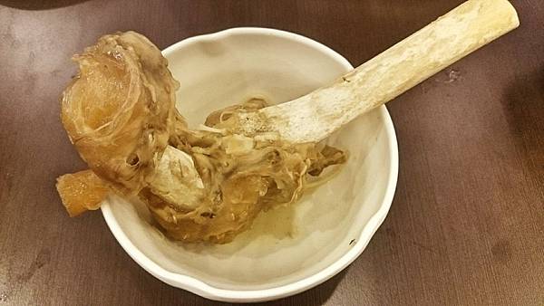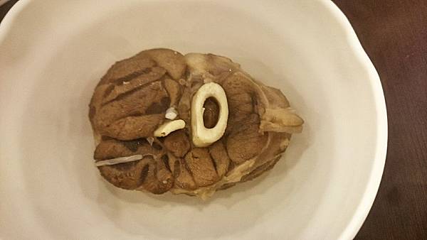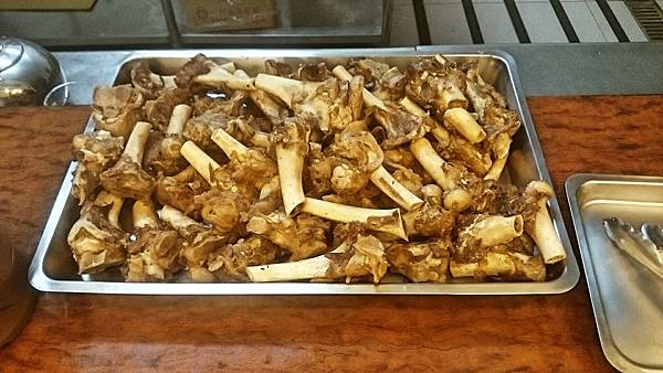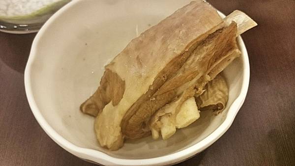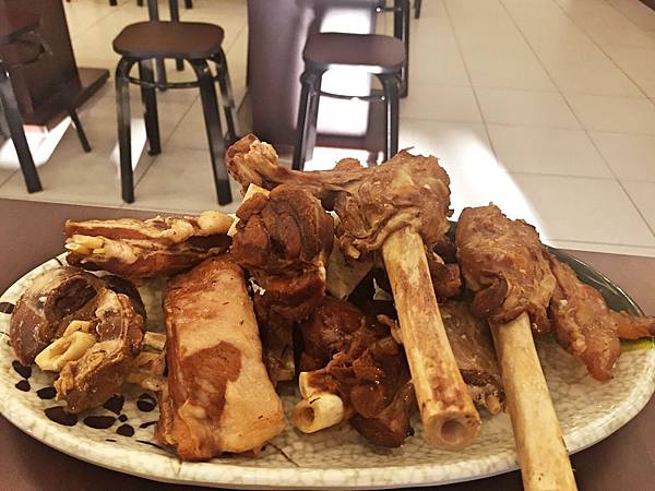 羊腱子切片,沒什麼騷味,肉質很紮實,需要咬合久一點,而筋絡接合處非常Q彈,且只要有骨頭部分都會有骨隨存在,這樣隨時都能吸的盡興了。